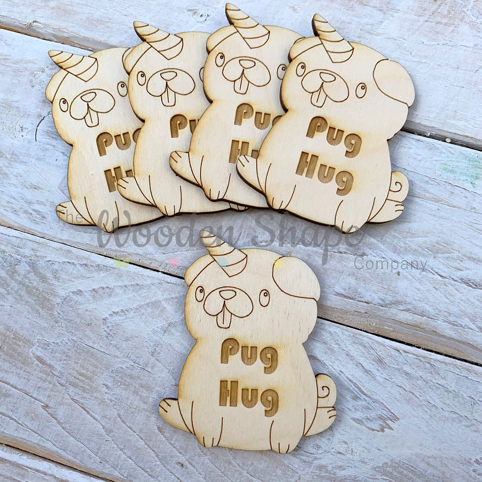 Plywood Engraved Pug Hug Little Pocket Hug 5 Pack