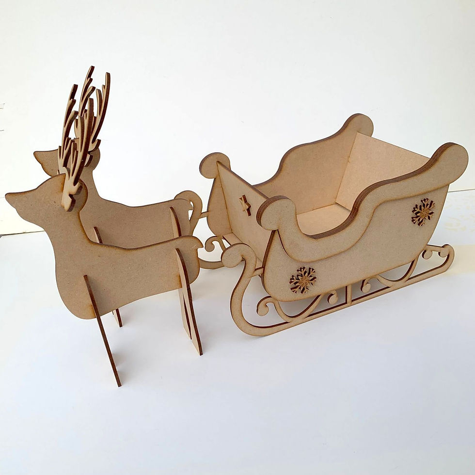 MDF Layered Sleigh with 2 Reindeer - Medium Size